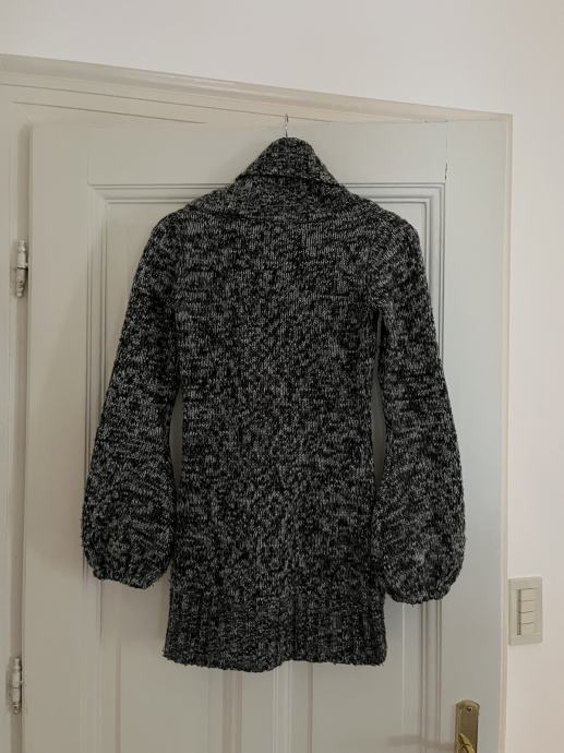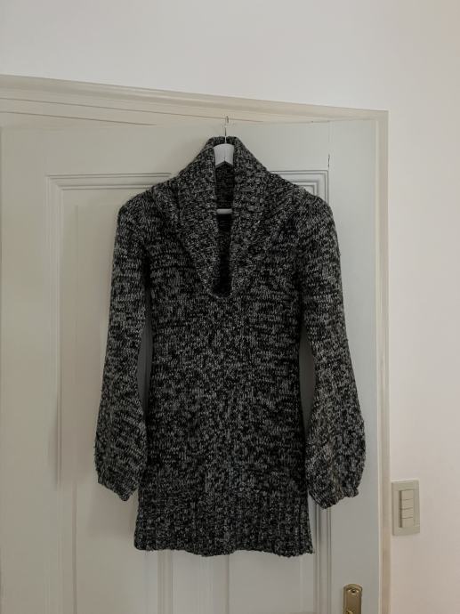Pulover je debelejši, topel, oprijet in ima razširjene rokave ter širok ovratnik