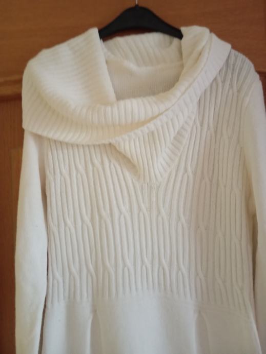 Pulover je brez madežev ali poškodb, vendar je nekoliko zmuckan, od ene pazduhe do druge meri 46 do cca 52cm, dolžina je 80cm, ne menjam, ptt ni vključena v ceno