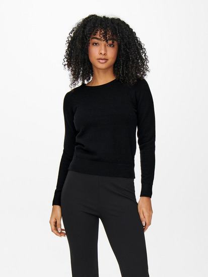 Malo nošen topel črn pulover, okrogel izrez. Osnoven kos, ki ne sme manjkat. Rahlo balonasti dolgi rokavi. Ne menjam.