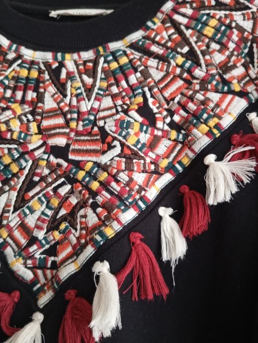 Izredno lepo ohranjen, bombažen, ni raztegljiv, od ene pazduhe do druge meri 57cm, dolžina je 60cm, ne menjam, ptt ni vključena v ceno