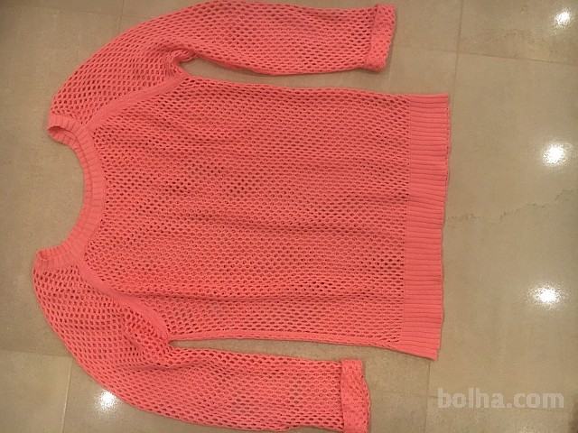 Prodam NOV prikupen moden tanek mrežasto PLETEN PULOVERČEK (na luknjice) v mareličasto-roza barvi. Velikost: S.