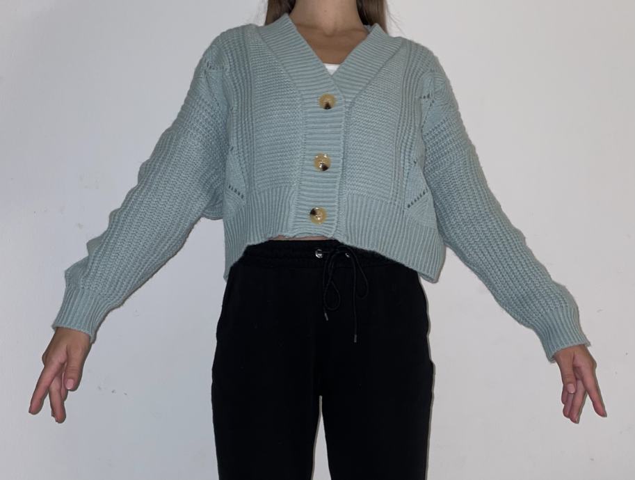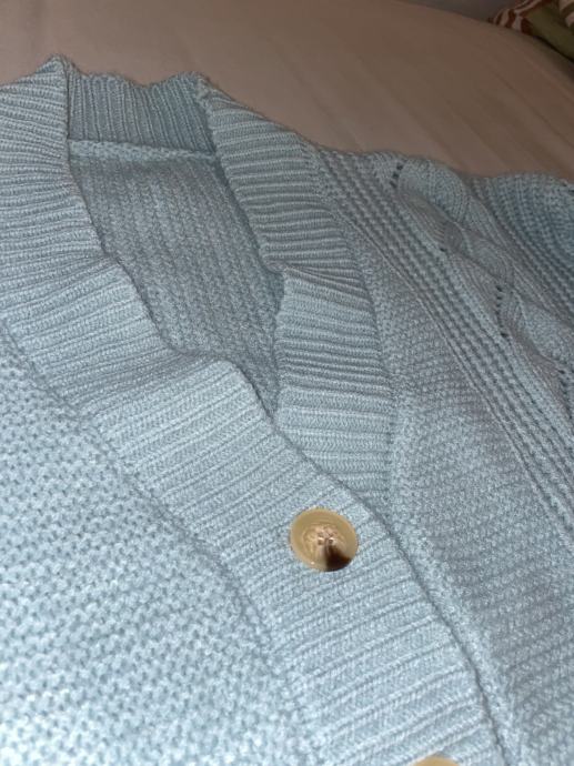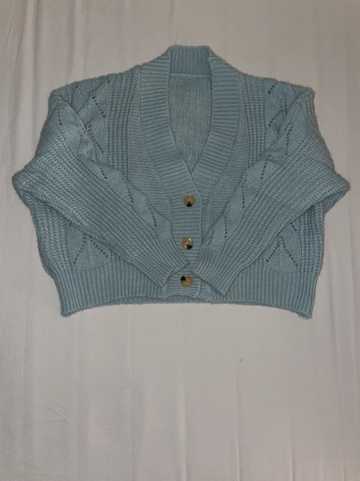 Prodajam popolnoma nov in nenošen pulover turkizne barve (redna cena 20€). Pulover je v številki OneSize, tako da je zame malekost preširok. Izdelan je iz mehkega materiala, ki je prijeten na dotik. Pulover ima tudi gumbe, tako da se ga lahko nosi tudi odpetega.