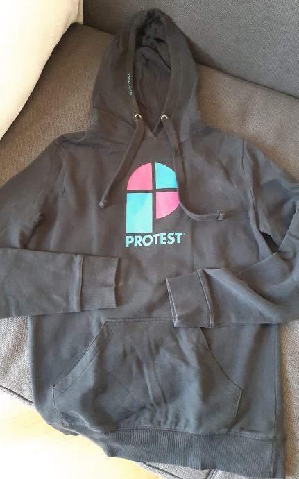 Samo parkrat oblečen pulover s kapuco znamke Protest, črne barve, na sliki zgleda spran, ker je ravno taka svetloba. Velikost ženska small. Ogled in prevzem v Ljubljani.