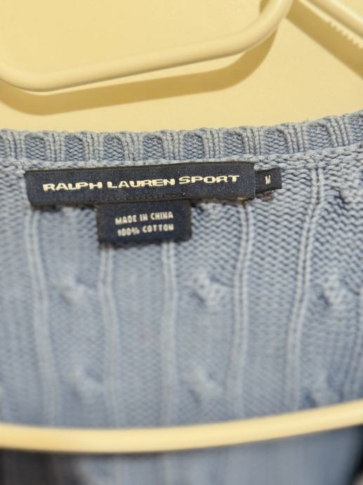 Prodajam rabljen moder pulover Ralph Lauren Sport v velikosti 38. Pleten je v klasičnem vzorcu s kitkami in ima V-izrez. Pulover je iz 100% bombaža in je v zelo dobrem stanju.