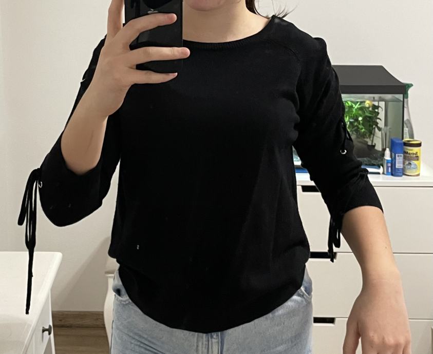Prodam črn pulover v velikosti XS. Je zelo prijetnega materjala. Na rokavih ima prepleteno vrvico, ki sam pulover lepo poživi. Cena je 6e.