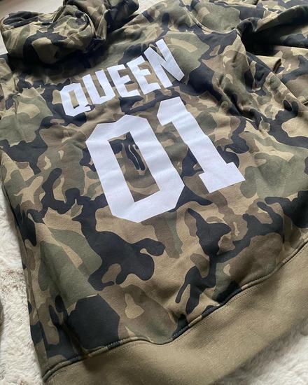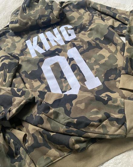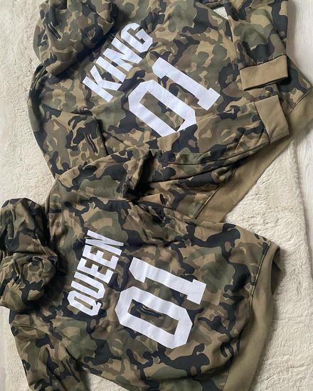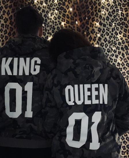 Prodam v kompletu 2 jopici s kapuco - Queen & King Ženski pulover je številka M, vendar je bolj primerno za S, če ima kdo rad, da je bolj ohlapno. Moški pulover je številka L, vendar je bolj primerno za M, če ima kdo rad, da je bolj ohlapno. Nošena sta bila samo 1x za sliko.