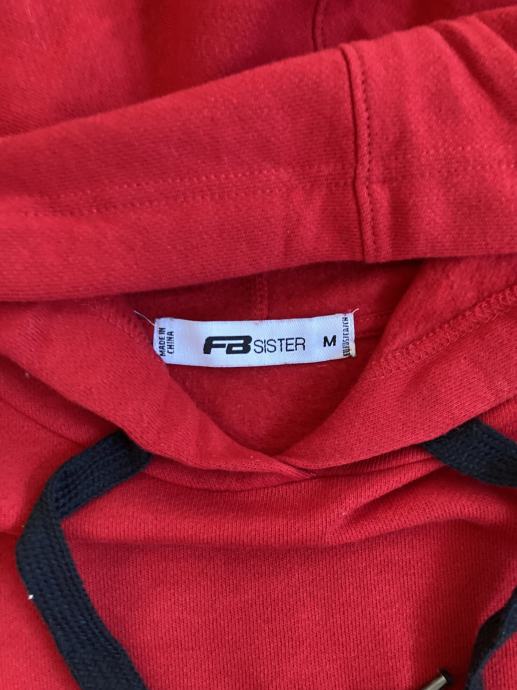 Prodam nošen rdeč pulover z dolgimi rokavi in kapuco primeren za številko S/M. Na rokavih je črn napis in mrežica.
