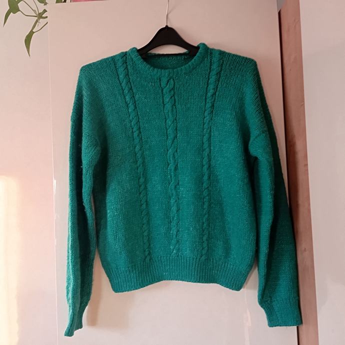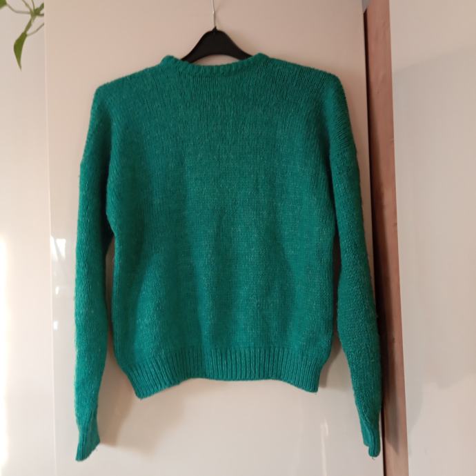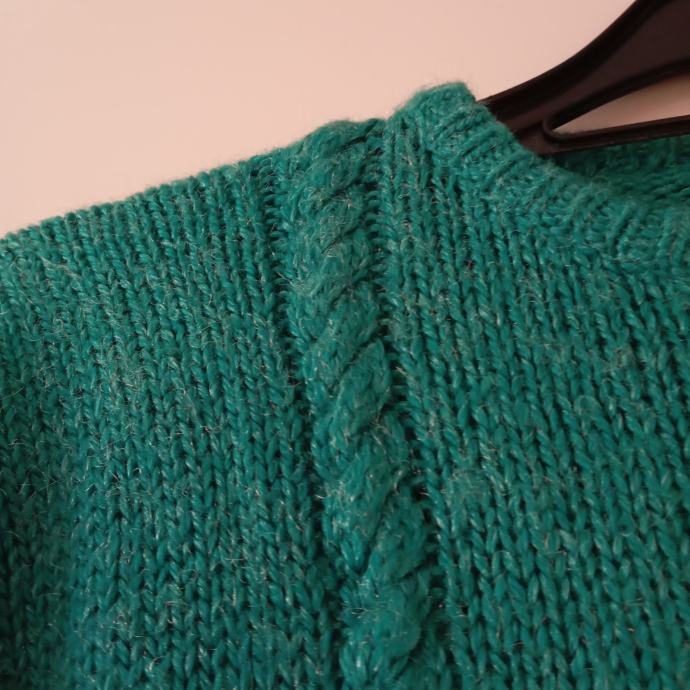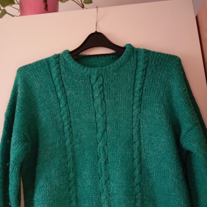 Izredno lepo ohranjen, ročno pleten, raztegljiv, od ene pazduhe do druge meri 50cm, dolžina je 55cm, dolžina rokava od pazduhe navzdol je 47cm, ne menjam, ptt ni vključena v ceno