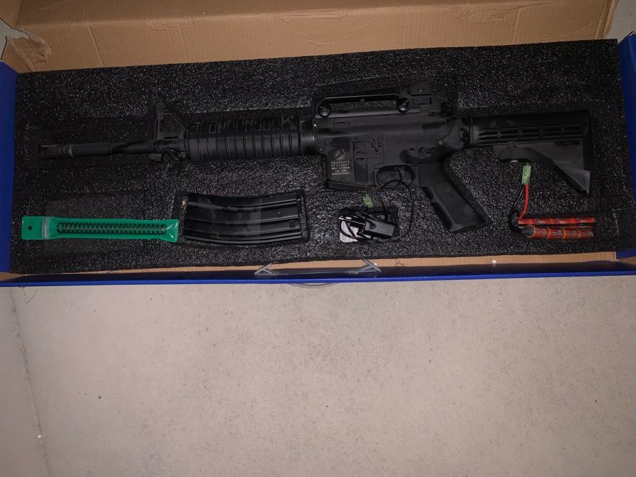 Prodam zelo lepo ohranjeno puško replike prave M4A1. Puška je redno mazana in čiščena. Notranji deli FULL METAL, zunanjost nekateri deli plastični zaradi manjše teže. Deluje brezhibno.