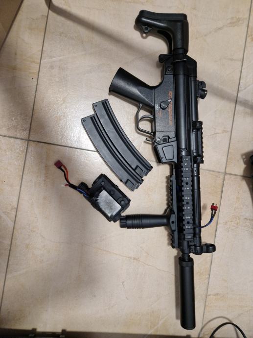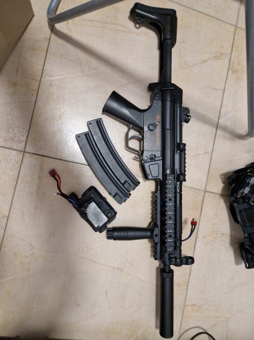 Prodam mp5, puška je bila nadgrajena z močnejšim fedrom, jekleni zobniki... narejen servis in spucana cev. Zraven dodam baterijo in 2 magazina. Moč 1J