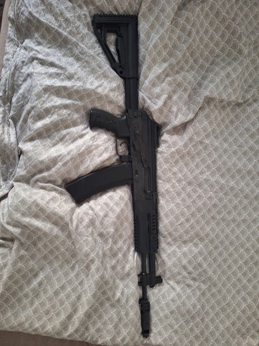 Prodam full metal AK-12 repliko proizvajalca LCT. Replika je bila trikrat uporabljena, nekaj znakov uporabe a dela skoraj brez problemov. Menjan je bil pin za stock in ohišje za motorček v pistol gripu.