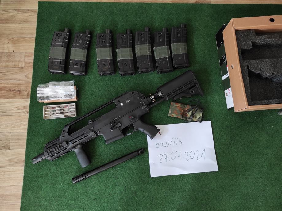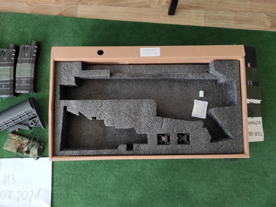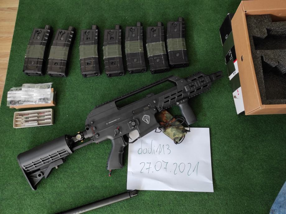 V kompletu je marker Maxtact Honorcore TGR2 MK2 Mod3 G36C (cena novega 730€) - polavtomatski mehanski