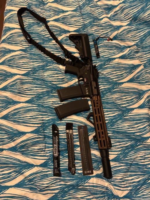 Prodam airsoft puško, rabljeno v dveh spopadih, kupljena nova, marca 2025 na spletni strani Gunfire, še v garanciji. Cena samo replike je bila 430eur.