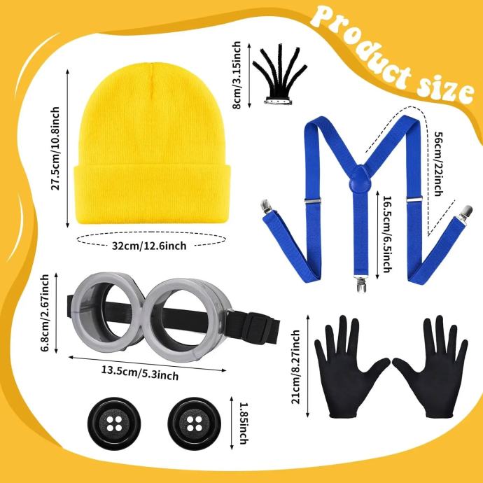 Kupec prejme : Kapo ,očala,naramnice ,2 gumba, par rokavic