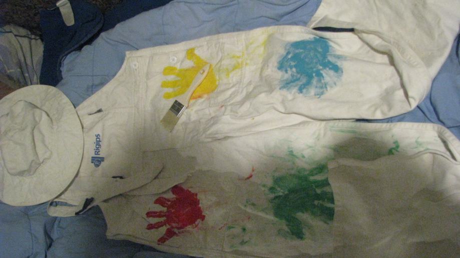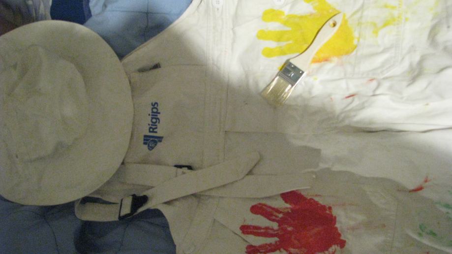 delovne hlace z naramnicami+ čopič+klobuk oziroma pokrivalo za na glavo....cena 18ev