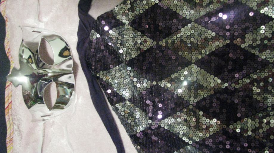 Svetleče hlače+ majica s svetlečimi krogci+ maska cez oči.....cena 23ev