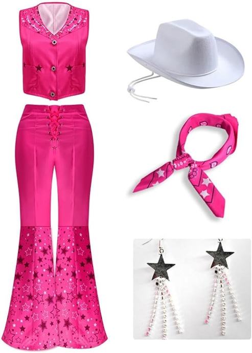 7 DELNI KOSTUM BARBI-BARBIE ( hlače,brezrokavnik,ruta,lasulja,klobuk,očala,uhani ) CENA : 69,90 EUR