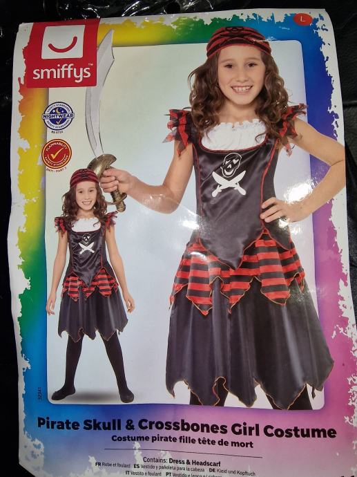 Prodam 1x nošen kostum piratke za 10-12 let in piratsko masko lobanja. Cena 13,00 eur. Pošljem tudi po pošti. K ceni se v tem primeru prišteje poštnina.