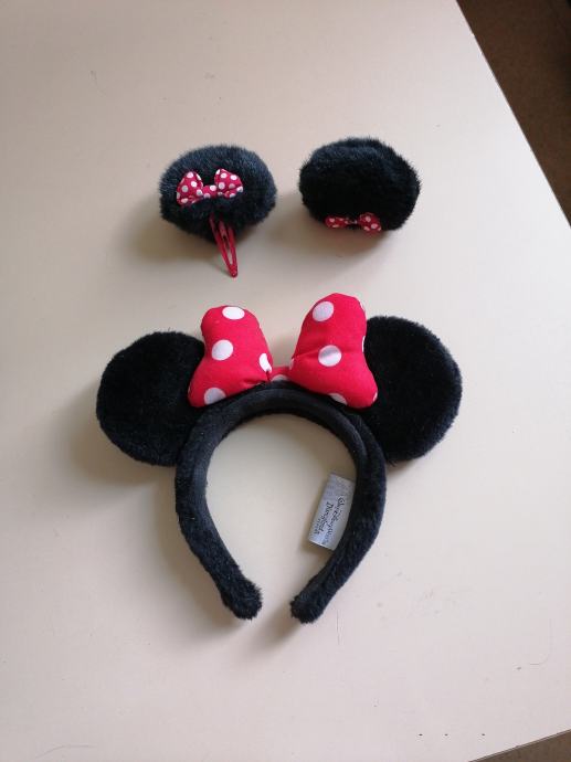 Komplet žametnih ušes in dveh ujemajočih mehkih sponk za lase, kupljeni v Disneylandu, ZDA, nikoli uporabljeno.