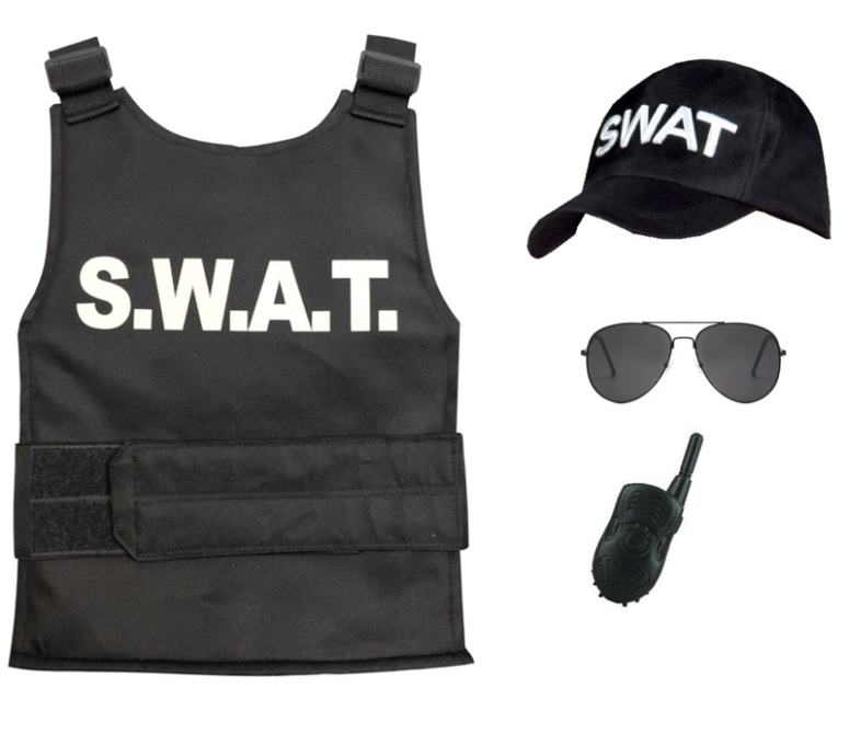 1 x S.W.A.T neprebojni jopič,1 x kapo S.W.A.T,1 x walki-talkie,1 x očala