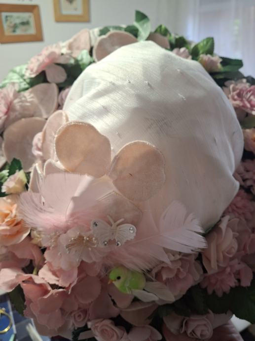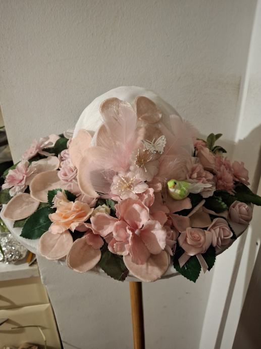 Neuporabljen pustni klobuk za kostum dame, ali pomladi,notranji obod je 50 do 52 cm. Oblekca je zelo lepe, travnato zelene barve ( slika ni najboljša).