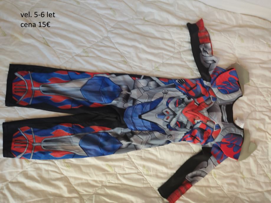 Prodam različne kostume primerne za otroka od 4 do 8 let. Nekaj je odlično ohranjenih, na nekateri so vidne sledi uporabe, predvsem ok zapiralnih ježkov, na enem je luknja na kolenu, vendar se z zaščito, ki je prek, ne vidi.