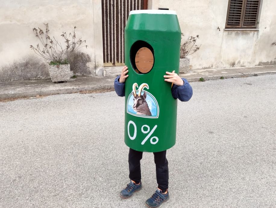Pustni kostum je unikat, izdelan doma. Primeren za otroka velikosti približno 130 cm.