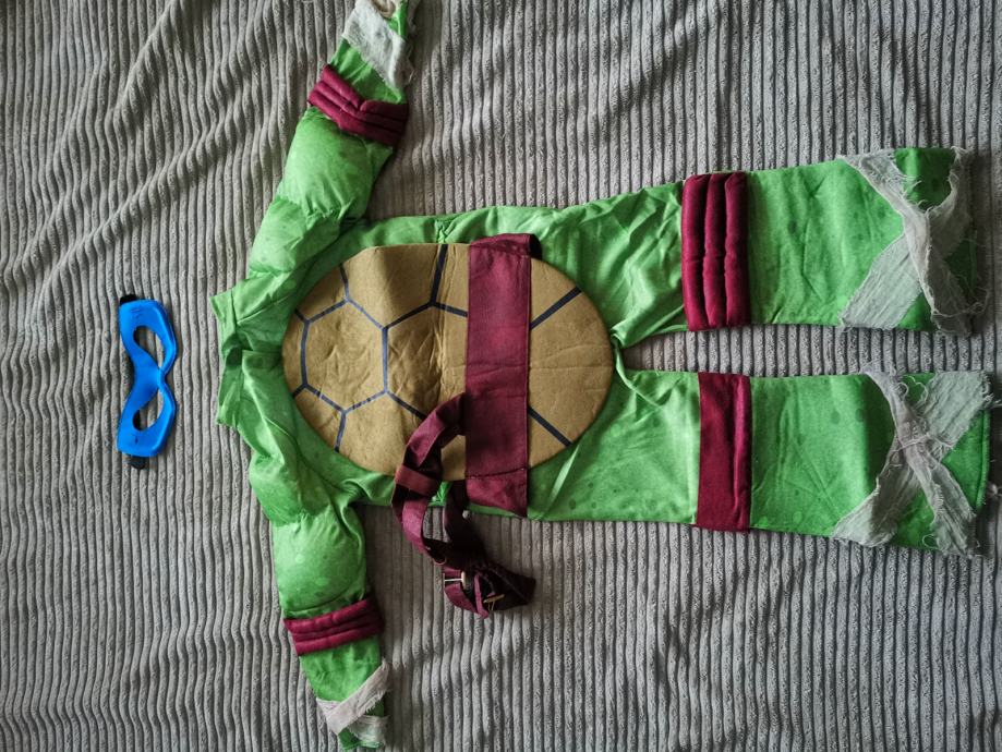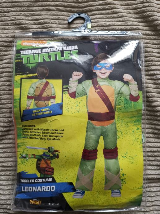 Prodam pustni kostum Ninja želva za 2-4 let. Cena 25 EUR. Prevzem v Vodicah. Več info na 040 888 289, Sandra.