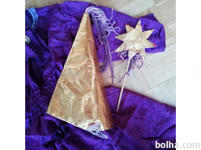 Mi smo ga uporabili za vilo, princeso in kraljično, zgornji del pa za arabsko princeso. Zraven damo doma izdelano čarobno palčko in klobuk za vilo.