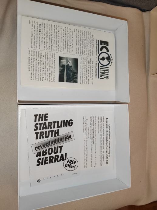 Prodam lepo ohranjeno Sierrino igro Eco Quest. Plošček je še originalno zapakiran. Stanje embalaže je razvidno s slik.
