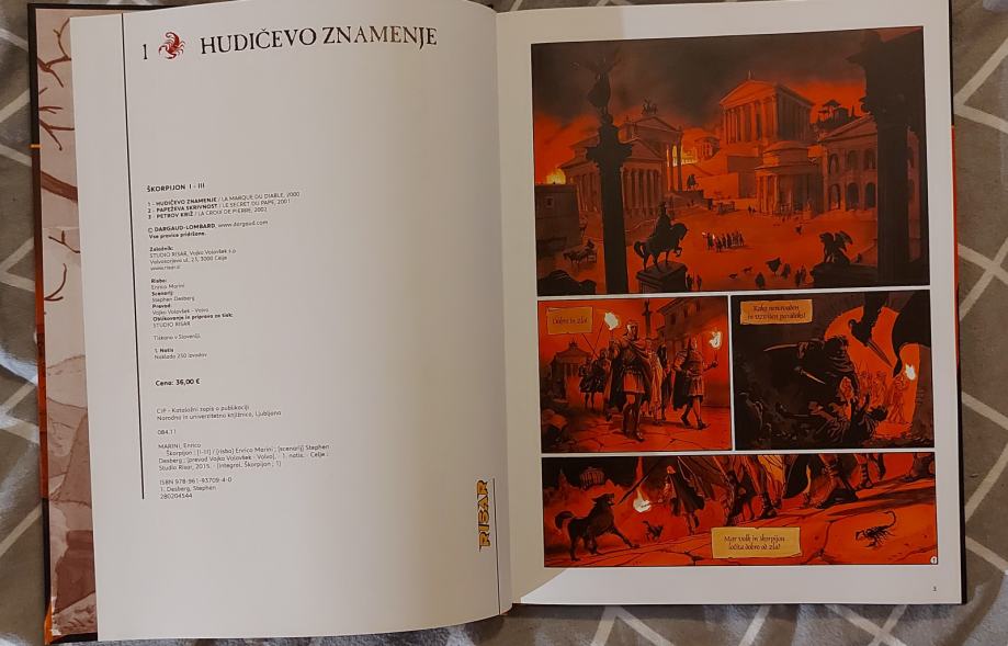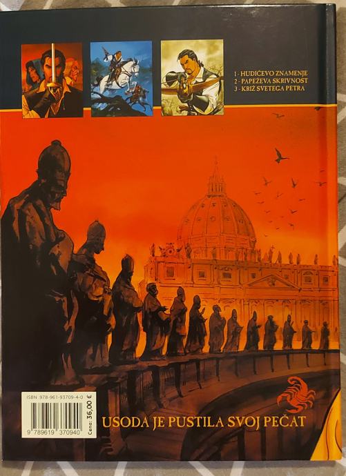 Prodam popolnoma nov Integral številka 1 z naslovom Škorpijon. V njem so prvi trije deli z naslovom 1-Hudičevo znamenje,2-Papeževa skrivnost,3-Križ Svetega Petra in integral 2 z naslovi 4-Vatikanski demon,5-Sveta dolina, 6-Templarski zaklad. Založba Risar,A4 format, v slovenščini, v barvah, 144 strani. Odlična zgodba iz viteških časov, prepletena z vplivi cerkve. Cena za kos je 36, za oba skupaj pa 60€