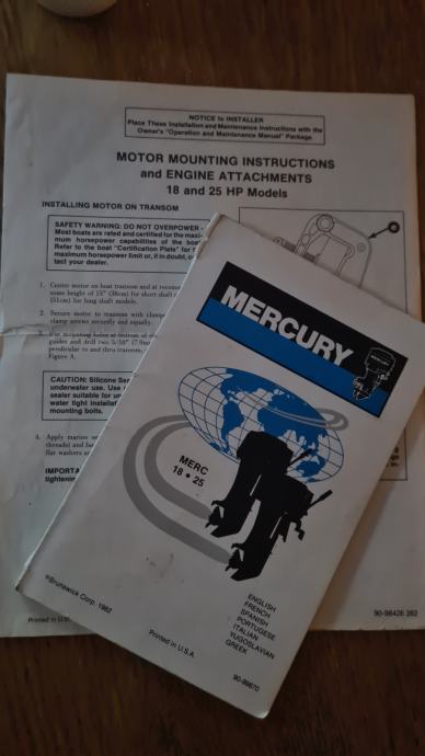 MERCURY 25KM 2T, kratka noga, ročni vžig, daljinske enoročne komande, regularni papirji za registracijo,