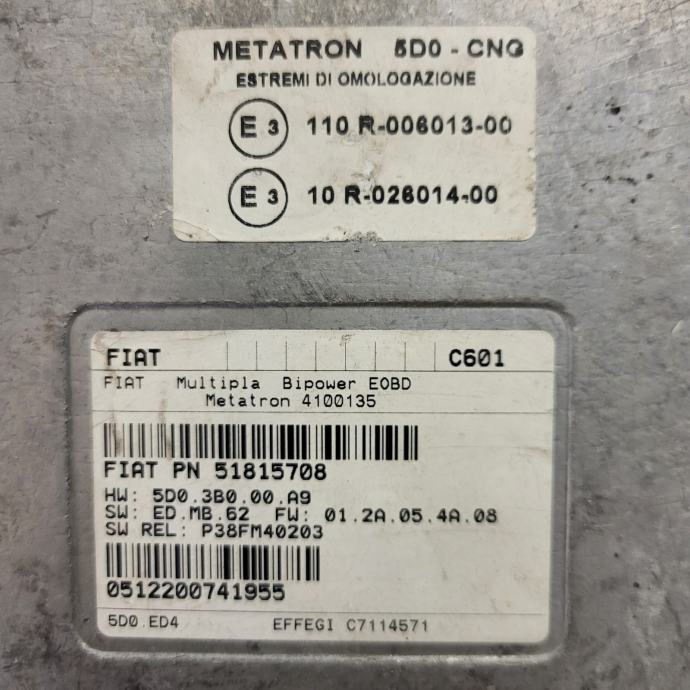 FIAT MULTIPLA BIPOWER ECU / 51815708 / 4100135 / C601 / METATRON