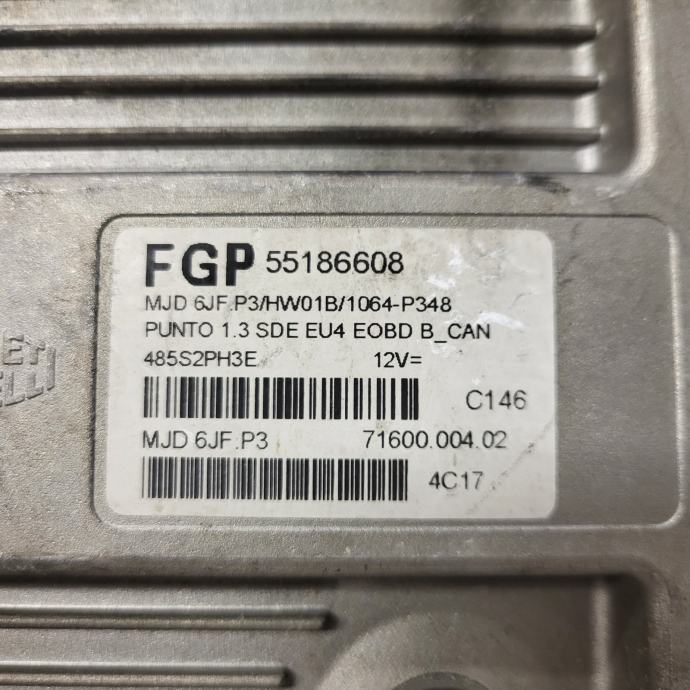 Fiat Punto 1.3 ECU / 55186608 / MJD 6JF.P3 / HW01B / MAGNETI MARELLI