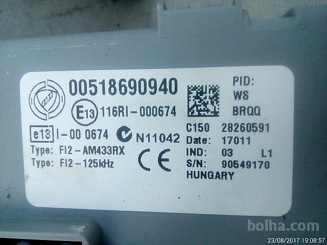 fiat punto evo 1.4 8v 57kw 2012 računalnik komplet set ključ