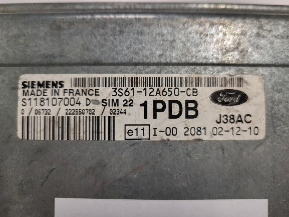 Ford ECU / S118107004D / 3S61-12A650-CB / 1PDB / SIM22 / J38AC / SIEME