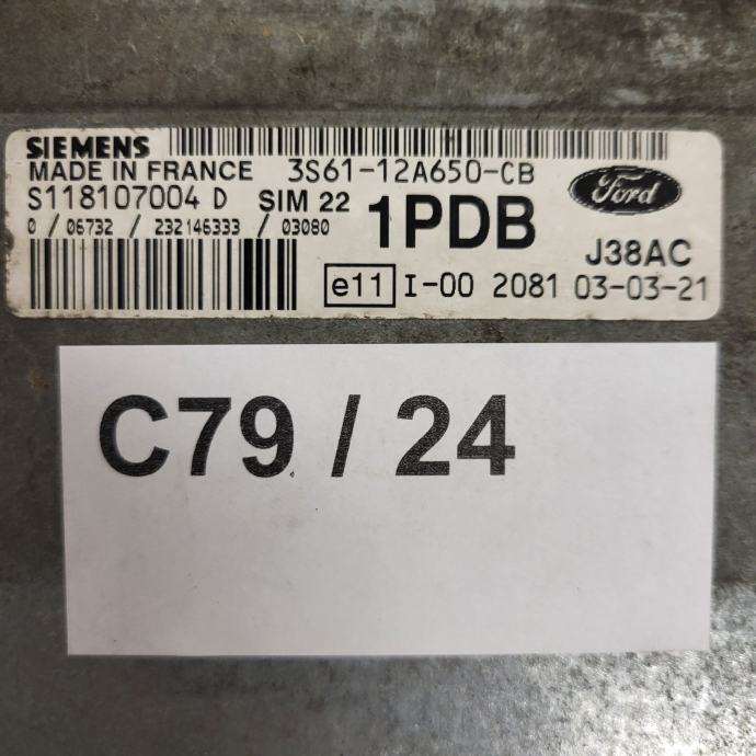 Ford ECU / S118107004D / 3S61-12A650-CB / 1PDB / SIM22 / J38AC / SIEME