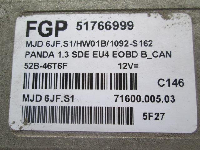 OSNOVNA KRMILNA ENOTA DDE / MODUL ZA VBRIZGAVANJE OEM N. 51766999 ORIGINAL REZERVNI DEL FIAT PANDA 169 (2003 - 08/2009) DIESEL LETNIK 2005