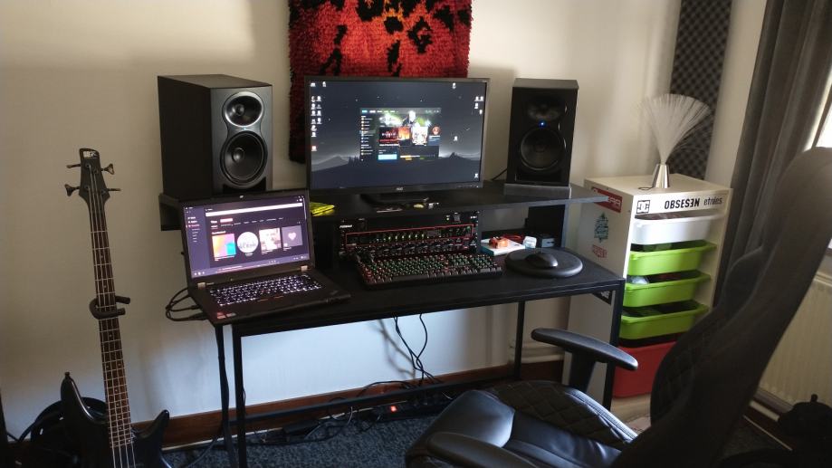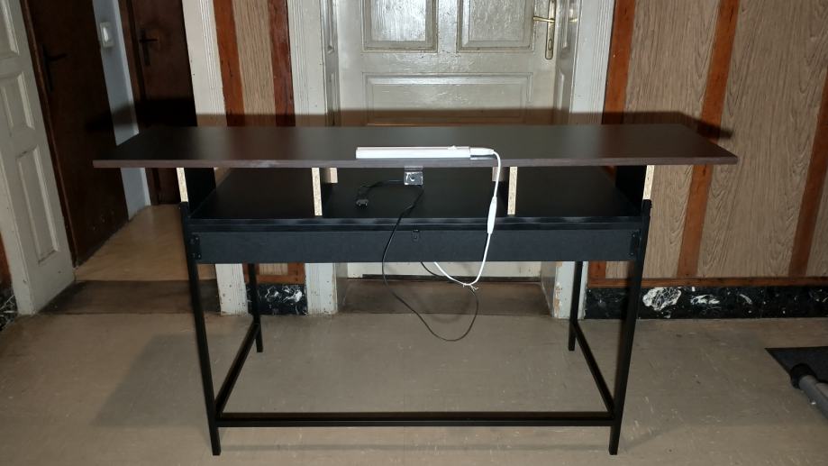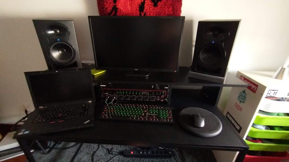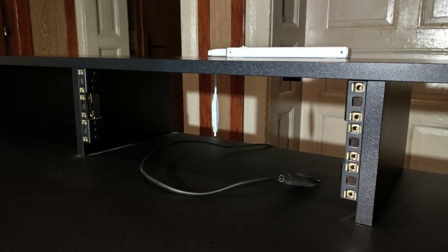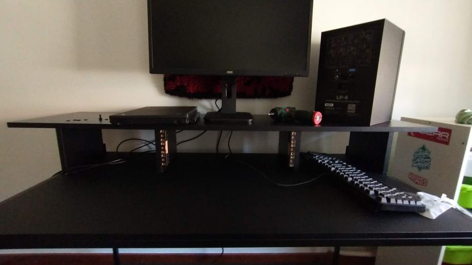 Miza iz Jyska, nadgrajena, na sredini ima prostor za 3U rack. Na zadnji strani je backlight za monitor s stikalom na sprednji spodnji strani mize. Ima na zadnji strani tudi nosilec, tako da jo je mogoče privijačiti v steno in tako preprečiti da se ziba. Dimenzije osnovne mize (DxŠxV) 120x60x75. Dimenzije poviška (DxŠxV) 150x36x18