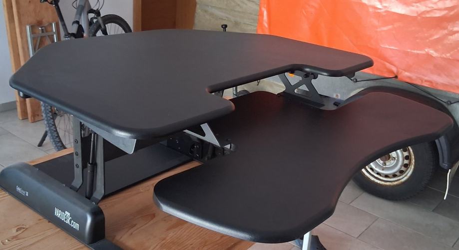Prodam kakovostno stoječo mizo VARIDESK Cube Corner 36, idealno za delo v pisarni ali od doma. Primerna za kotne mize in manjše prostore.
