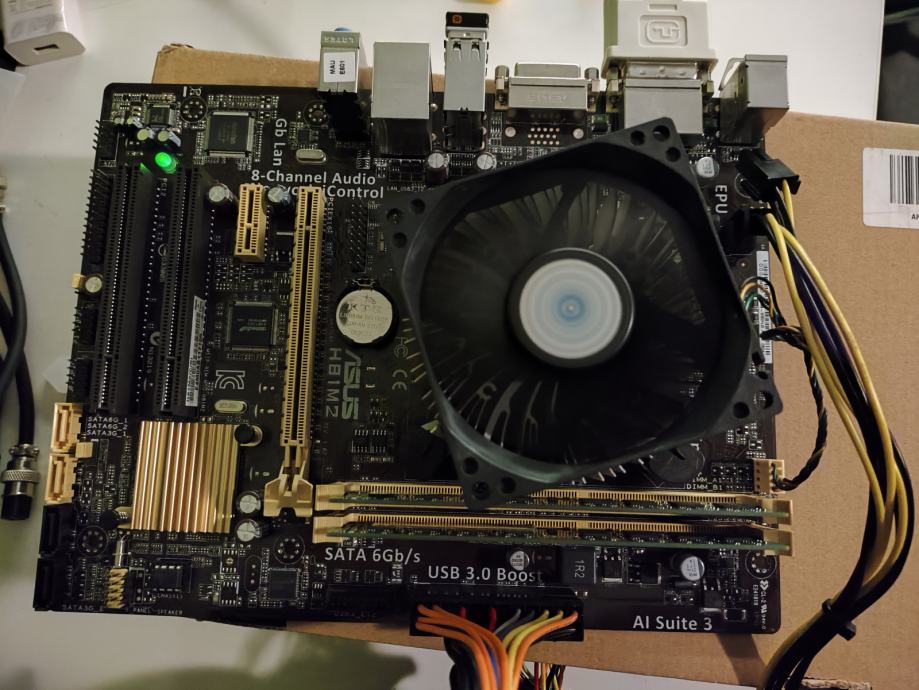Matična Asus HB1M2, Procesor Intel i3 4170 z grafiko in hladilnikom in ram DDR3 4GB.
