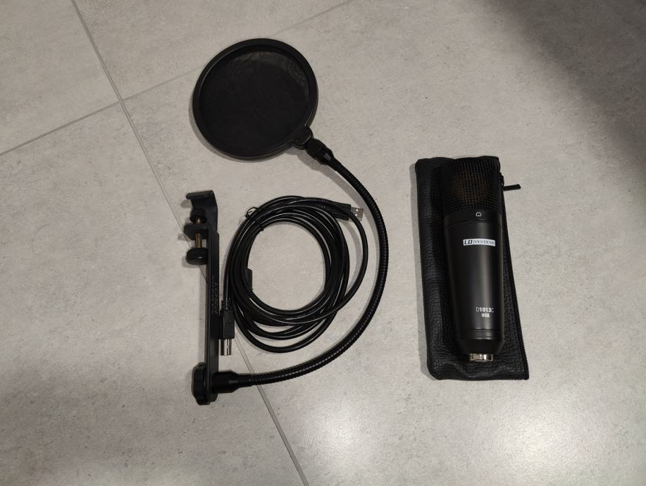 Zaradi neuporabe prodam studijski mikrofon in kakovosten pop filter. Priložena je torbica za prenašanje ter kabel za priklop v računalnik.