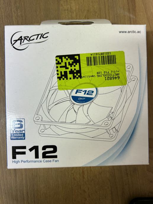 Ventilator za računalnik Arctic fan F12. Dimenzija 120 x 12 x 25 mm.