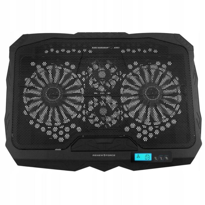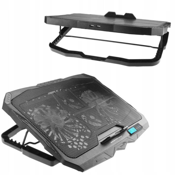 Zahvaljujoč 4 ventilatorjem bo ta hladilna podloga zagotovila učinkovito hlajenje vašega prenosnika, ne glede na to, ali gre za igranje iger, urejanje videoposnetkov ali intenzivno delo. Poleg tega je opremljena z LCD zaslonom, ki vam omogoča spremljanje temperature in hitrosti ventilatorjev, kar vam bo pomagalo pri nadzoru nad temperaturo vašega prenosnika.