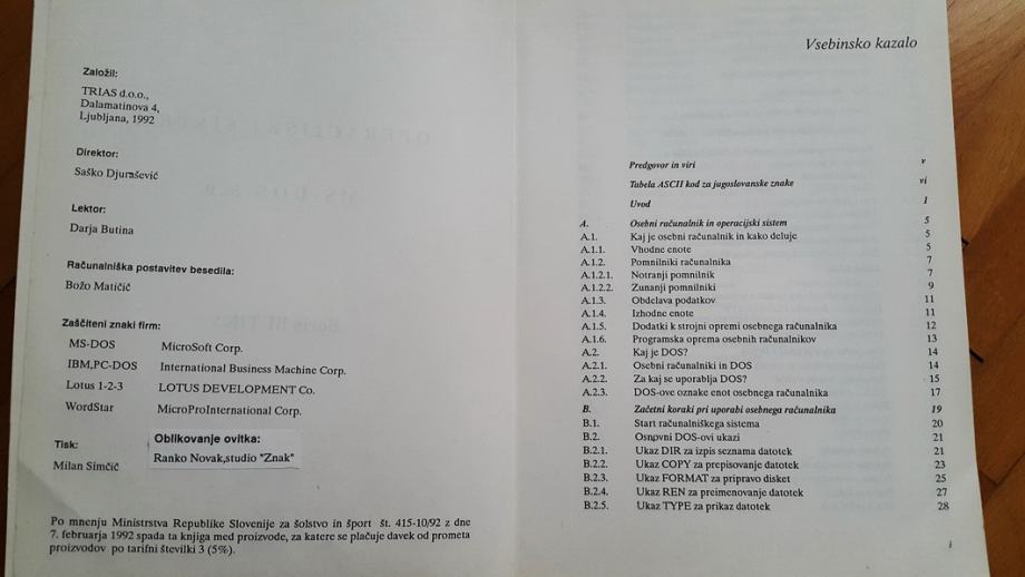 Prodam originalno knjigo iz leta 1992 od Boris Butina, z naslovom Operacijski sistem MS-DOS 5.0. Reč je bila last Očeta, ki/kateri pa zaradi upokojitve in drugih zdravstvenih omejitev ne more več brati oz. z njo nima več kaj za početi. Knjiga je drugače lepo ohranjena, nič ni kaj strgano, počečkano ali da bi listi/platnice imele "ušesa". Tisk (berljivost, ohranjenost črk) je pa tudi še več kot odličen. Kar se tiče pa uporabnosti znanja v njej pa presodite sami po posnetkih kazala v oglasu. Glede na starost je zadeva lahko tudi pomemben sestavni delček muzejske tehnične zgodovine Slovenije. Že čaka na svojega novega lastnika.