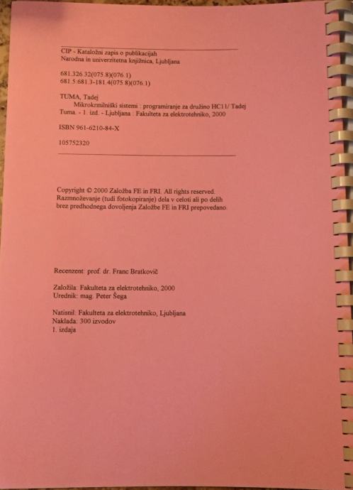 Prodam priročnik Mikrokrmilniški sistemi (programiranje za družino HC11).