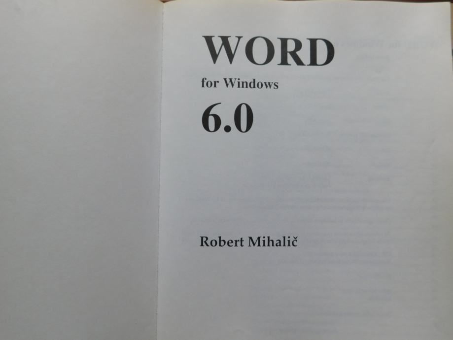 Robert Mihalič, Priročnik Word for windows 6.0. Odličen priročnik za osnovno znanje worda.