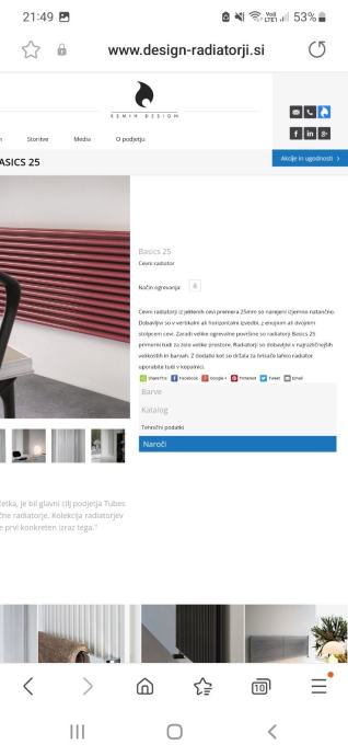 Ventili ter nosilci so v barvi radiatorja, termostatska glava bela ter kromirane matice.