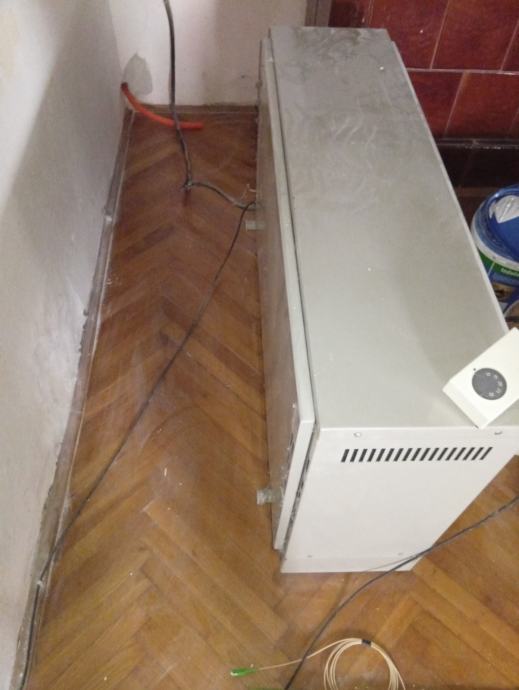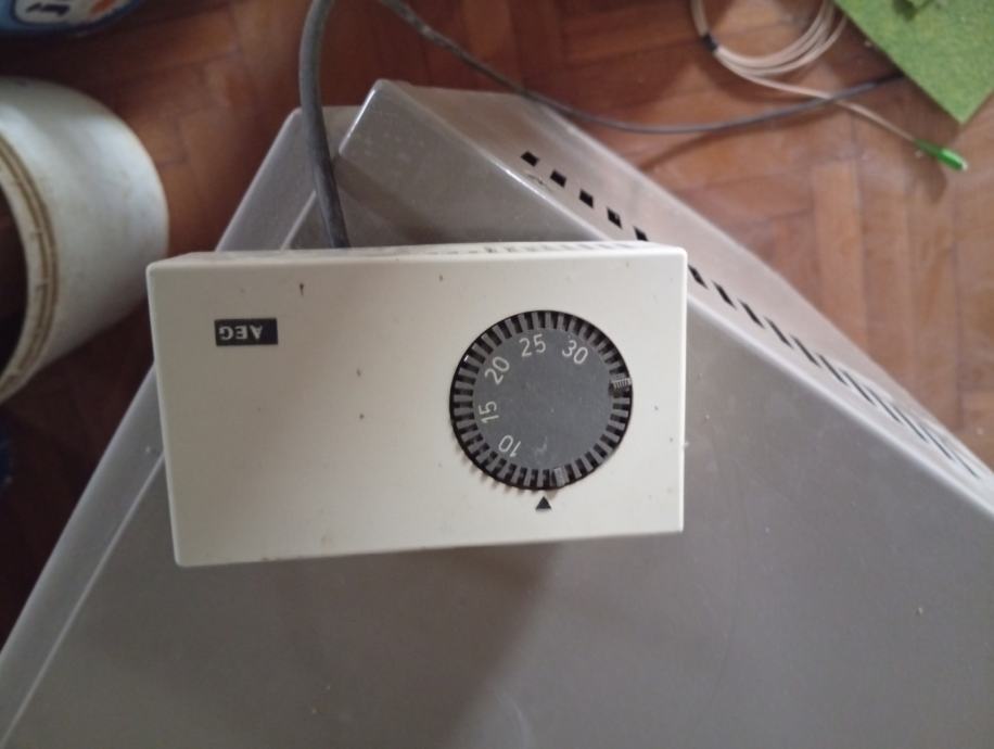 Prodam električni grelec znamke AEG. Vgrajen ima mehanski termostat. Spodaj ima reže za vstop hladnega zraka, zgoraj za izstop toplega.