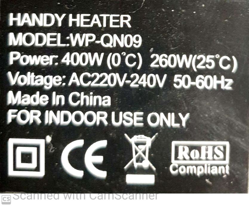 HANDY HEATER - grelec na elektriko- priključitev v električno vtičnico